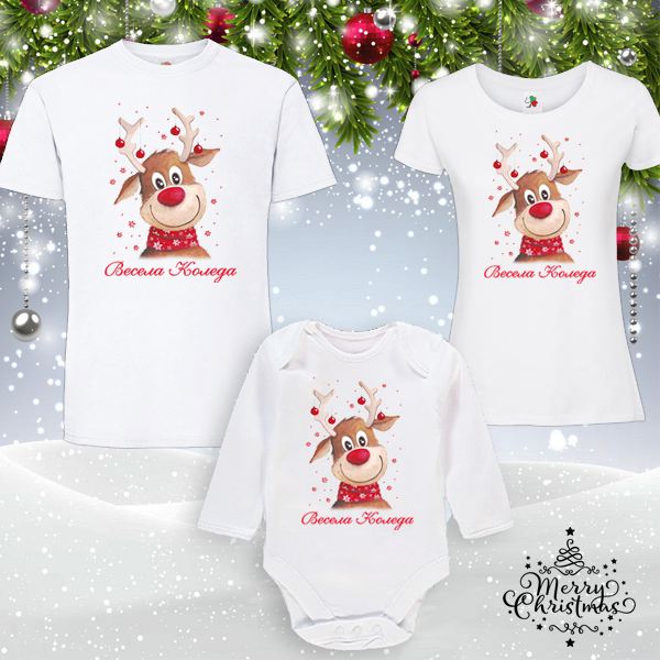Забавен коледен комплект - мъжка тениска, дамска тениска и бебешко боди.