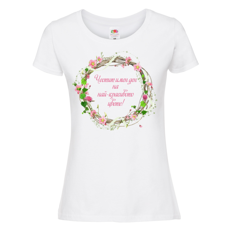 Бяла дамска тениска "Честит имен ден"