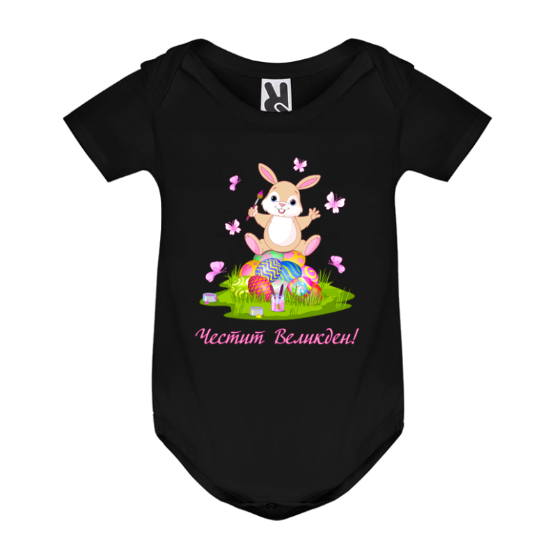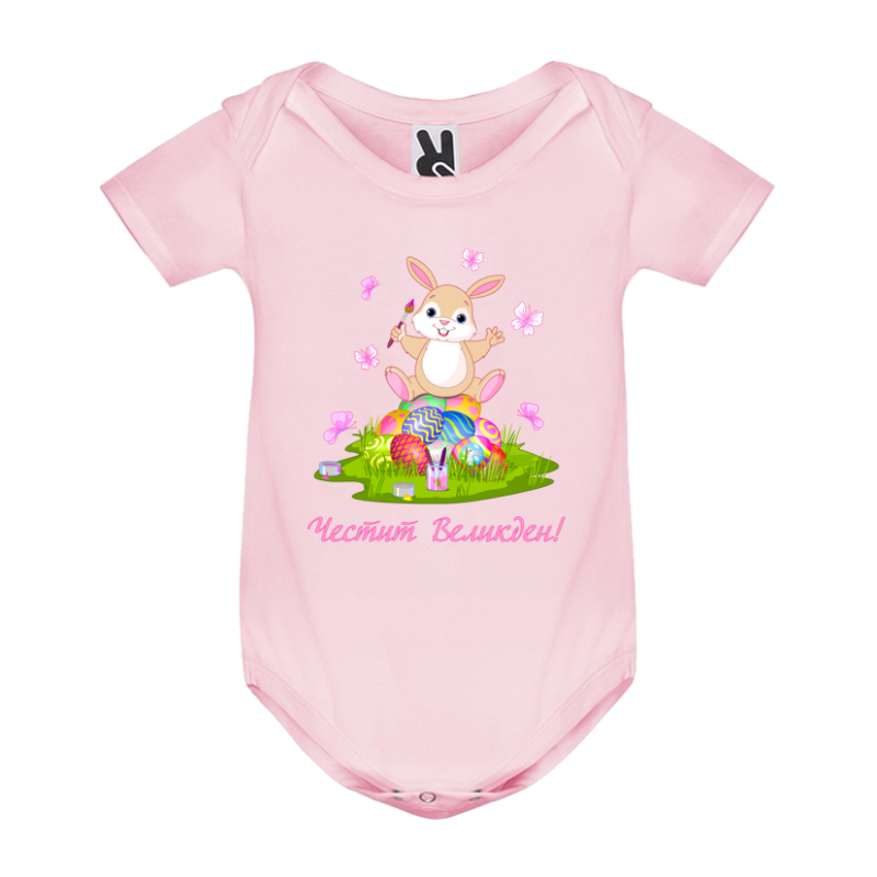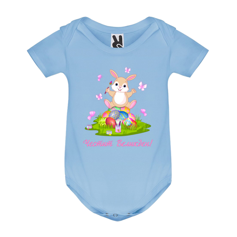 Бебешко боди с къс ръкав от финна памучна метерия с кръстосано отваряне на рамото и tik-tak копчета отдолу.
