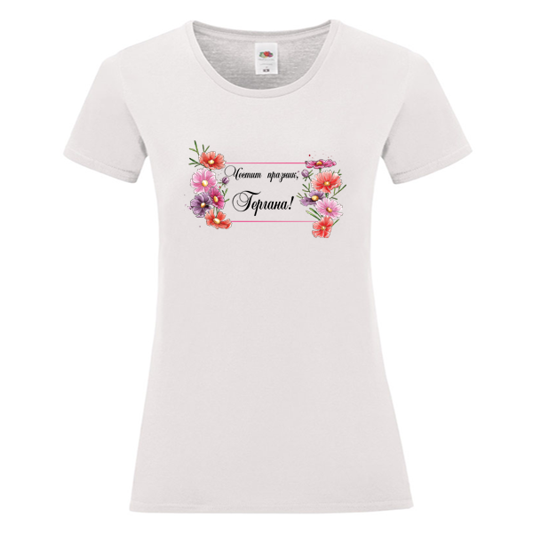 Бяла дамска тениска - Честит празник, Гергана