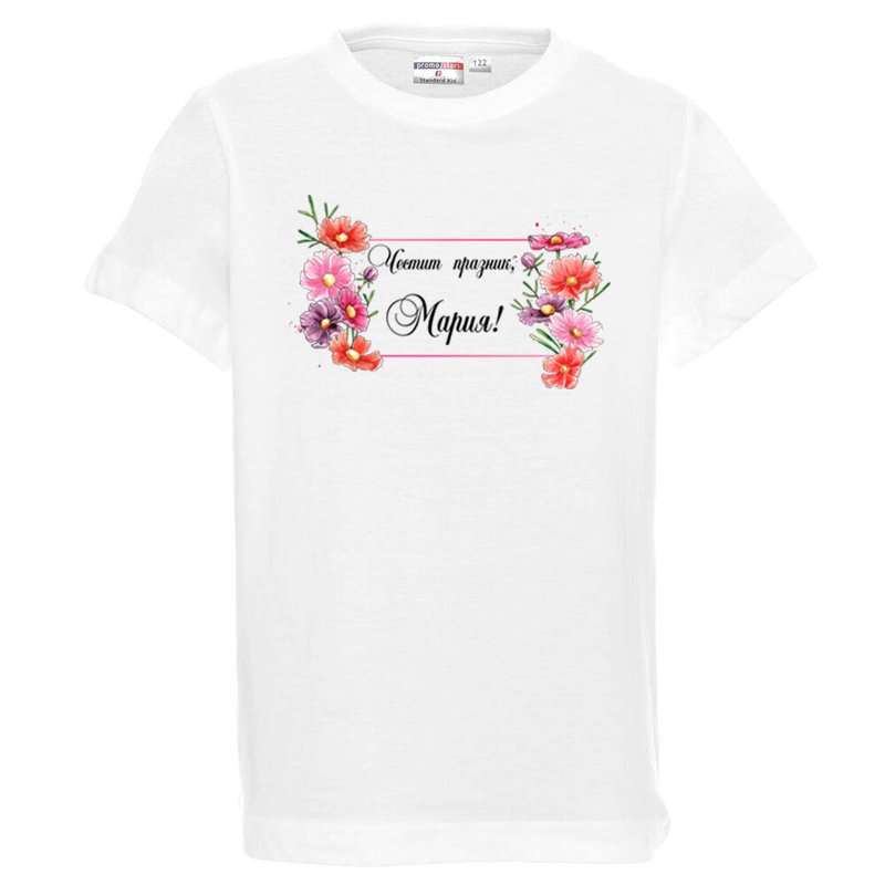 Бяла детска тениска- Честит празник, Мария