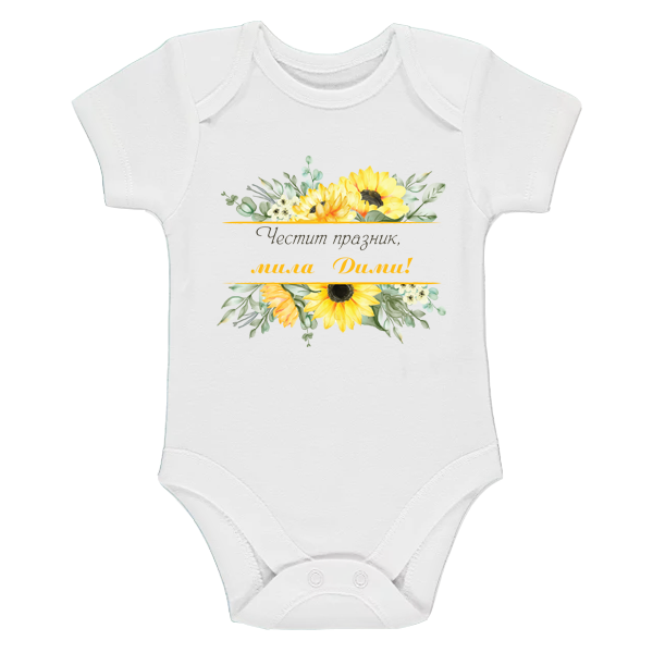 Бяло бебешко боди- Честит празник, мила Дими