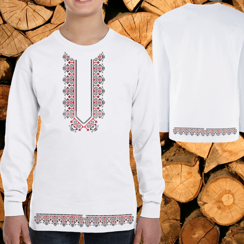 Детска блуза дълъг ръкав с фолклорни мотиви в духа на народния бит и култура.