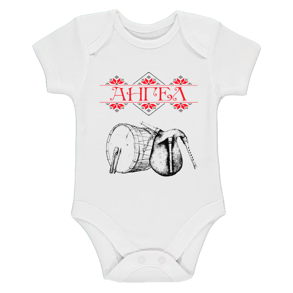 Бяло бебешко боди- Ангел, тъпан и гайда