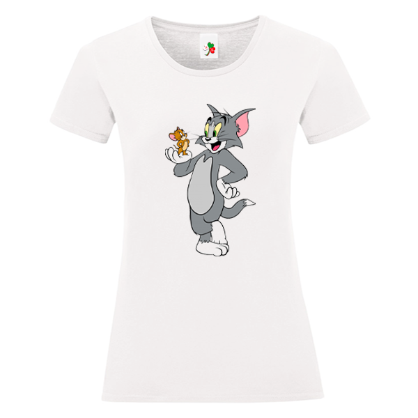Бяла дамска тениска- Том и Джери