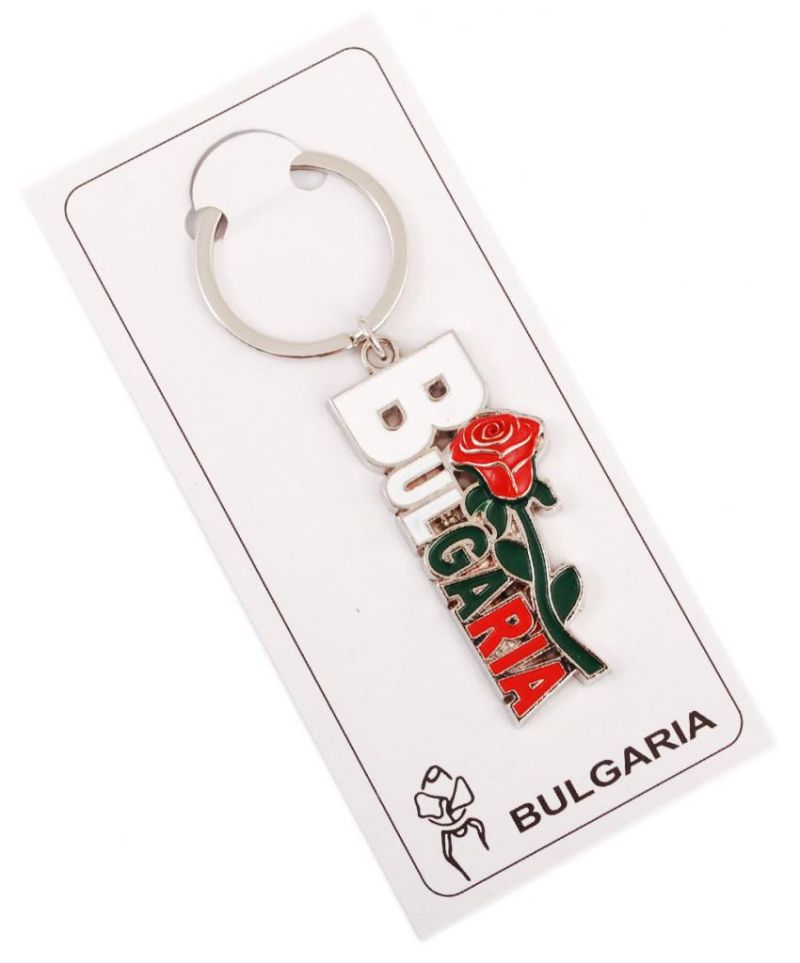 Сувенирен метален ключодържател - Bulgaria и роза.