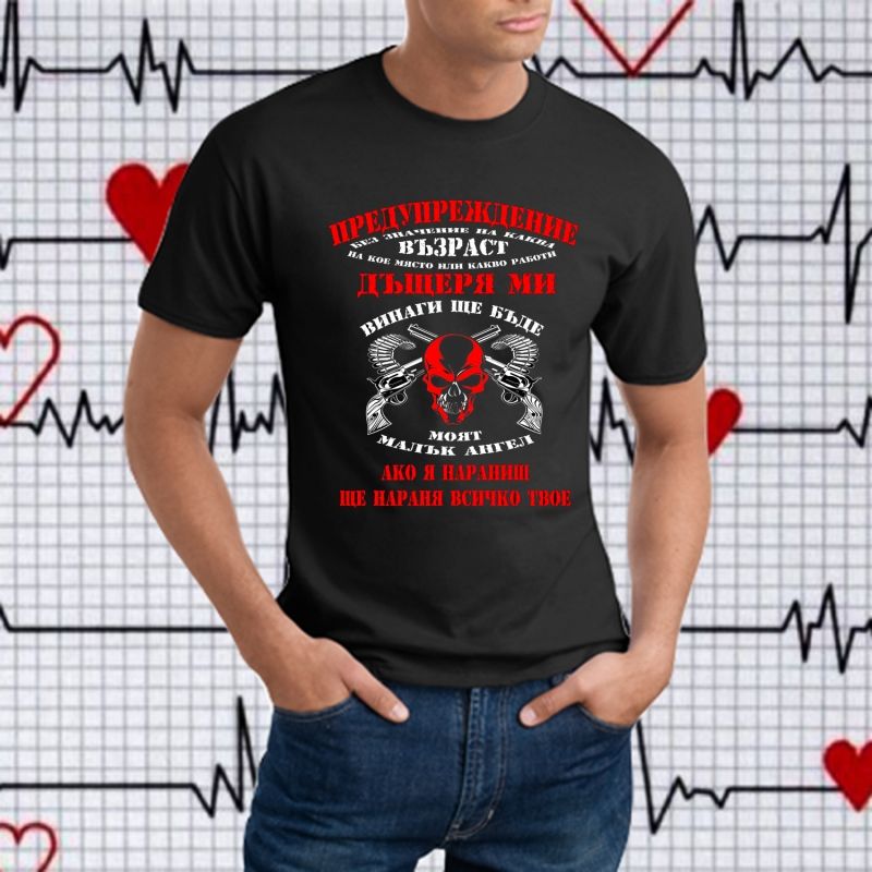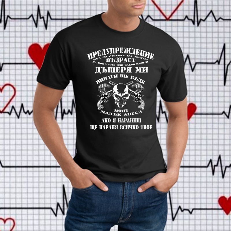 Мъжка тениска "Предупреждение-ДЪЩЕРЯ МИ "