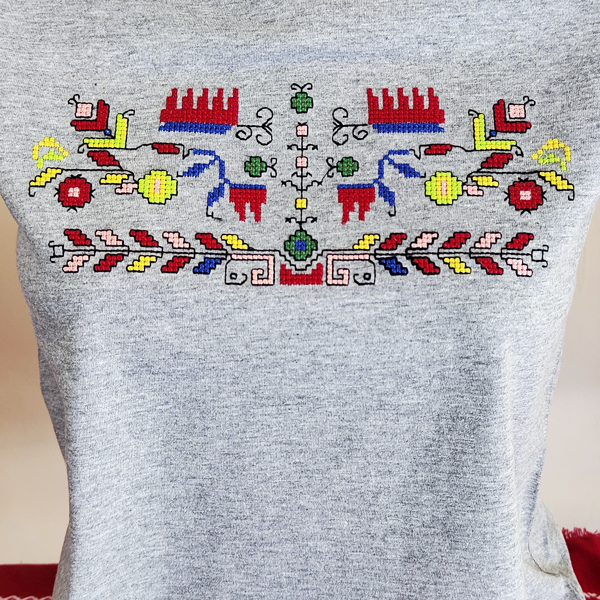 Дамска сива тениска с бродерия