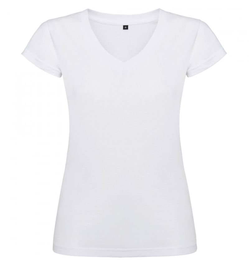 Дамска бяла тениска - V образно деколте