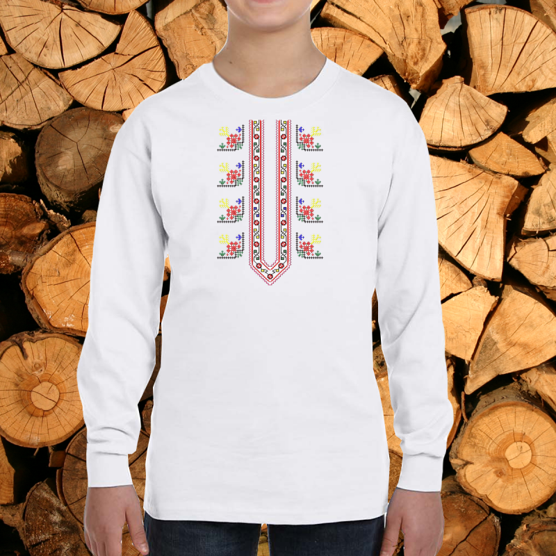 Детска блуза дълъг ръкав с фолклорни мотиви в духа на народния бит и култура.