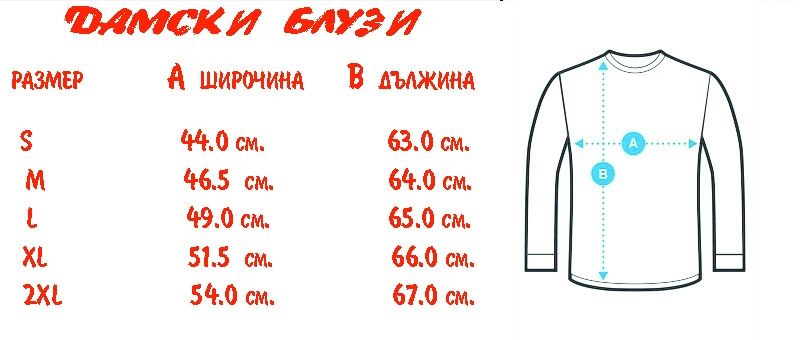 Моля измерете ваши блузи или тениски и сравнете с размерите от таблиците.
