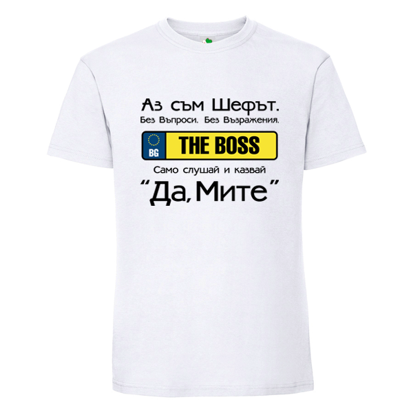 Бяла мъжка тениска- Аз съм шефът Митьо