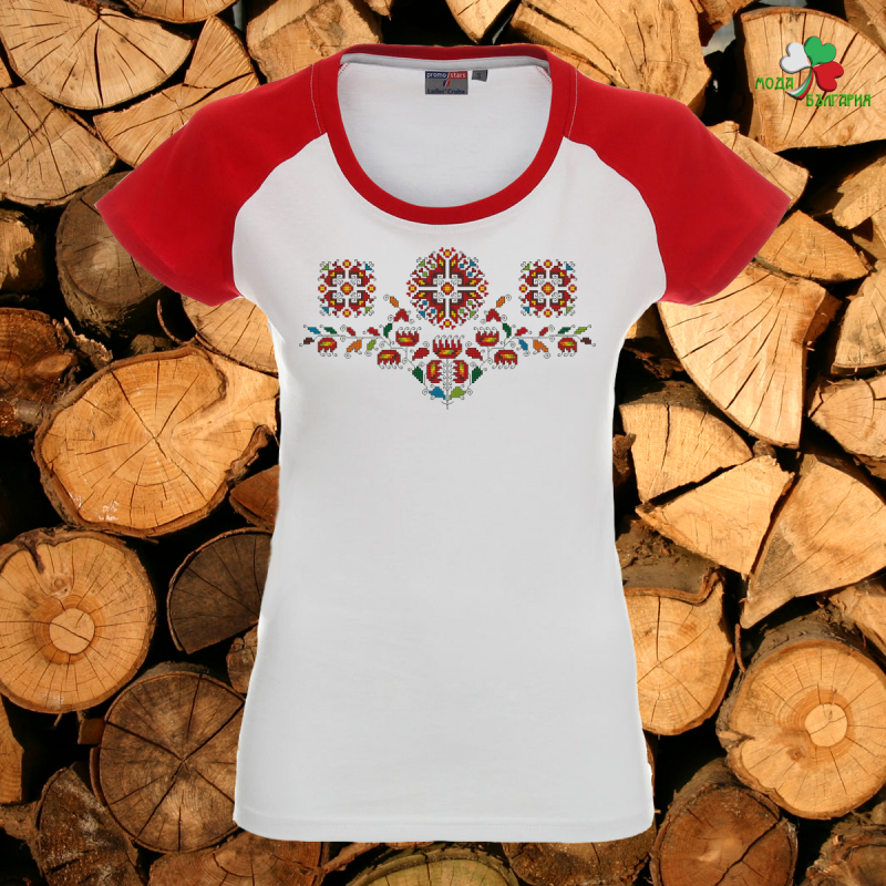 Тениска 100% пениран памук . Реглан ръкави в контрастен червен цвят.