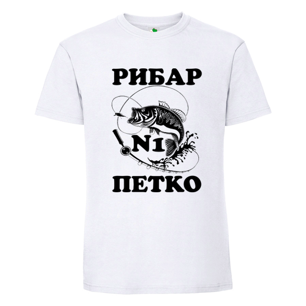 Бяла мъжка тениска- Рибар №1 Петко