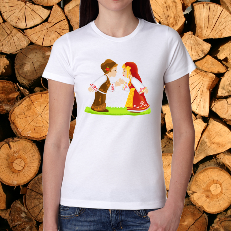 Бяла тениска с народни мотиви. Материя 100% памук.